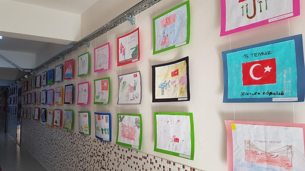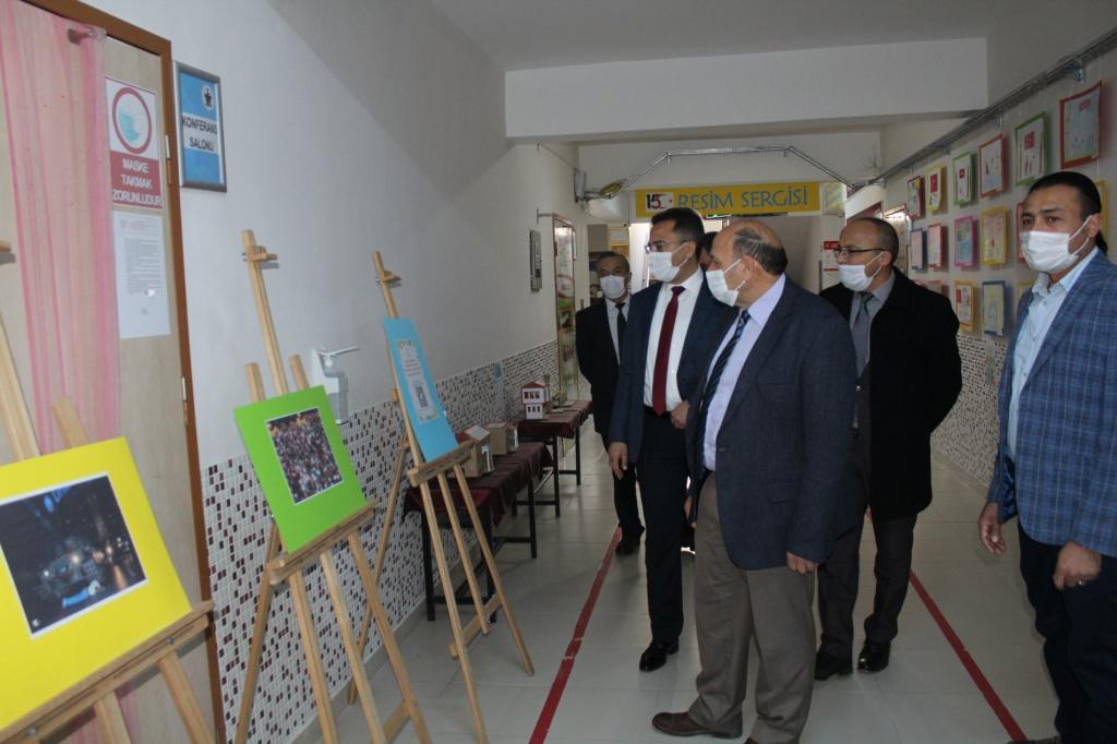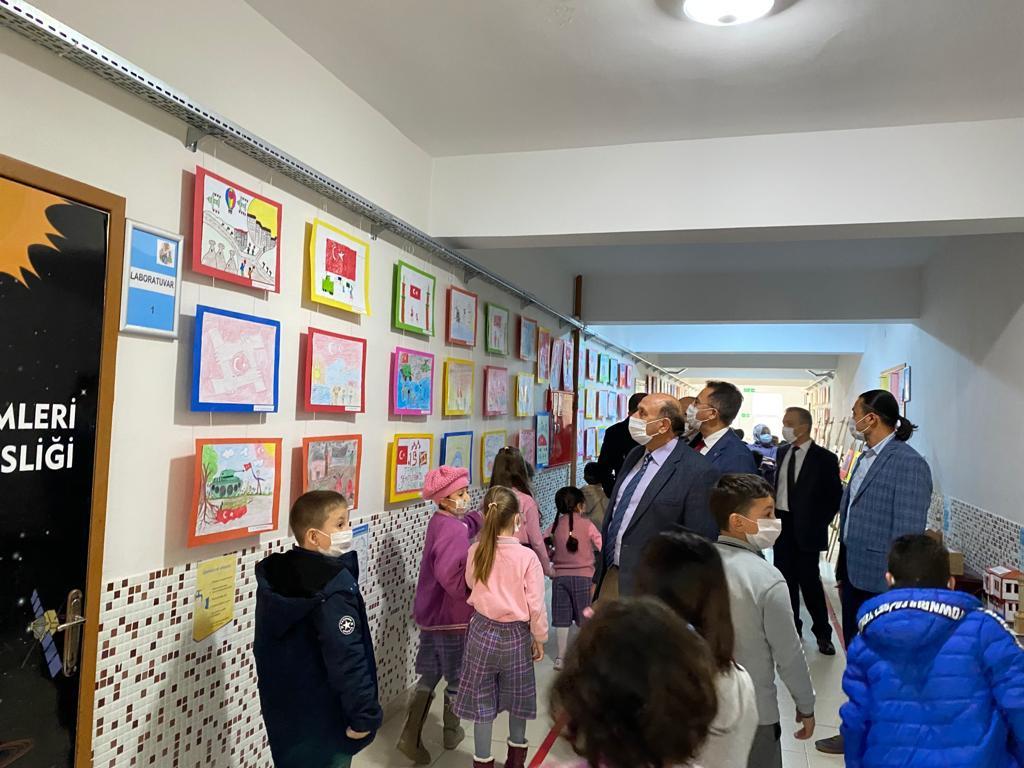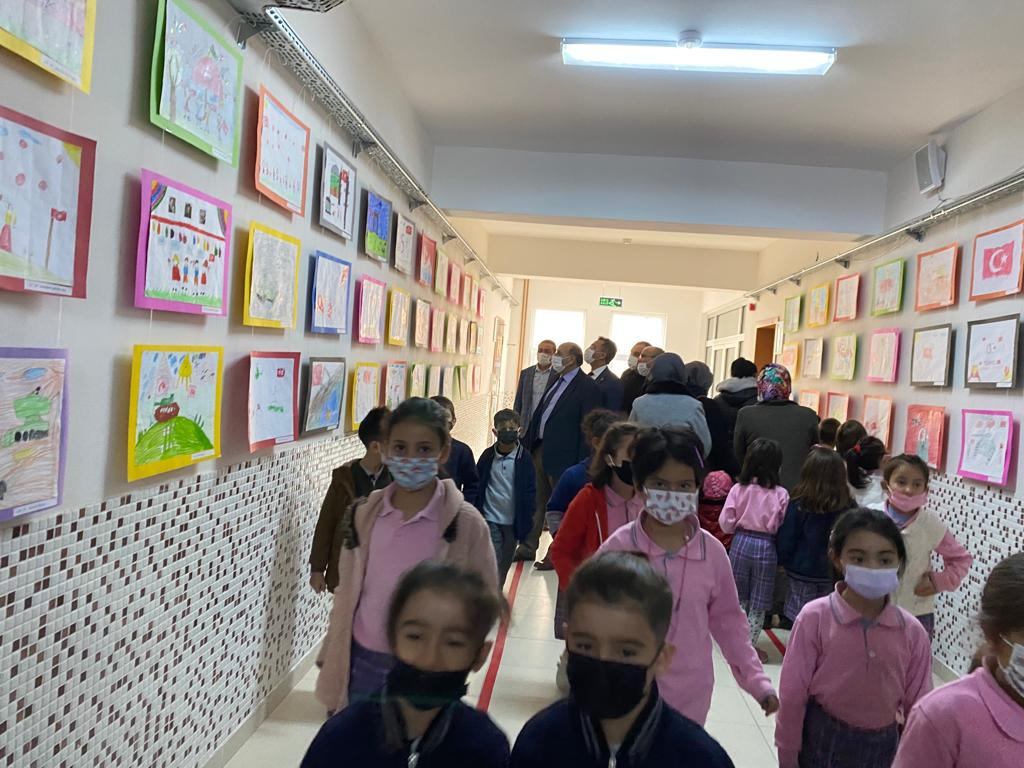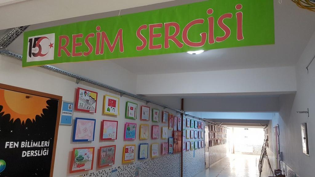 23 Kasım 2021 Salı günü okulumuzda öğrencilerimizin demokrasi, millî birlik ve beraberlik, vatan sevgisi, yurt savunması ile şehitlik konularında yaptığı resimlerden oluşan resim sergisi yapıldı. Sergimiz İlçe Milli Eğitim Müdürü Derviş ÖZÇAL, Milli Eğitim Şube Müdürü Mehmet Ali KELEŞ, okul müdürleri, öğretmenlerimiz, velilerimiz ve öğrencilerimizin katılımıyla gerçekleştirildi. Resim Sergisini gezerek incelemelerde bulunan İlçe Milli Eğitim Müdürümüz Sayın Derviş ÖZÇAL, serginin açılmasında emeği geçen okul idarecilerine, öğretmenlere ve öğrencilere teşekkür etti.